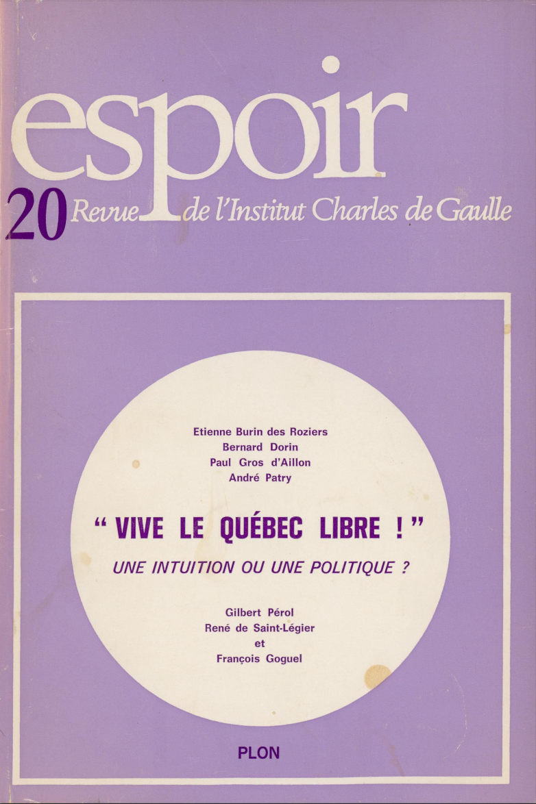 Revue Espoir n°20 – « Vive le Québec libre ! » une intuition ou une politique ?